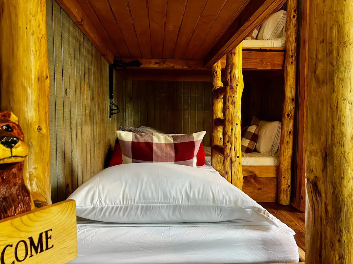 The Cub Cabin is a bunkhouse created with kids in mind! We have four other full size cabins on the property, and we built this bunkhouse to be an overflow space for kids. The Cub Cabin can be rented alone, or with a cabin. If you would like to rent it with another cabin, we heavily discount the price. Look for our other cabins: The Longhorn Lodge, The Horse Cabin, The Bear Cabin, and the Wildlife Cabin.